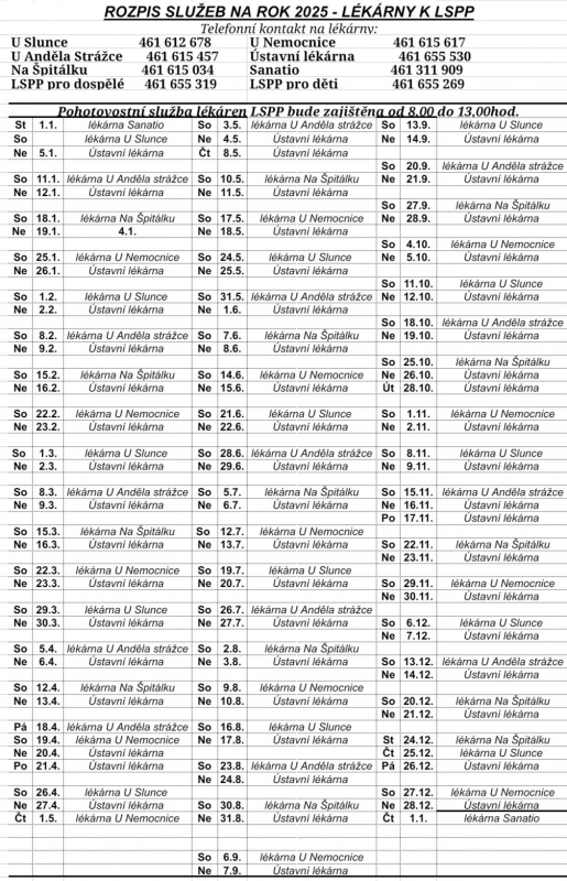 Rozpis služeb lékáren 2025